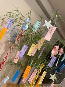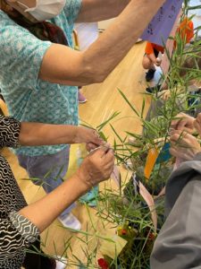 ご利用者様全員で笹飾りを作り、願い事が叶いますようにと短冊に書いていただきました。